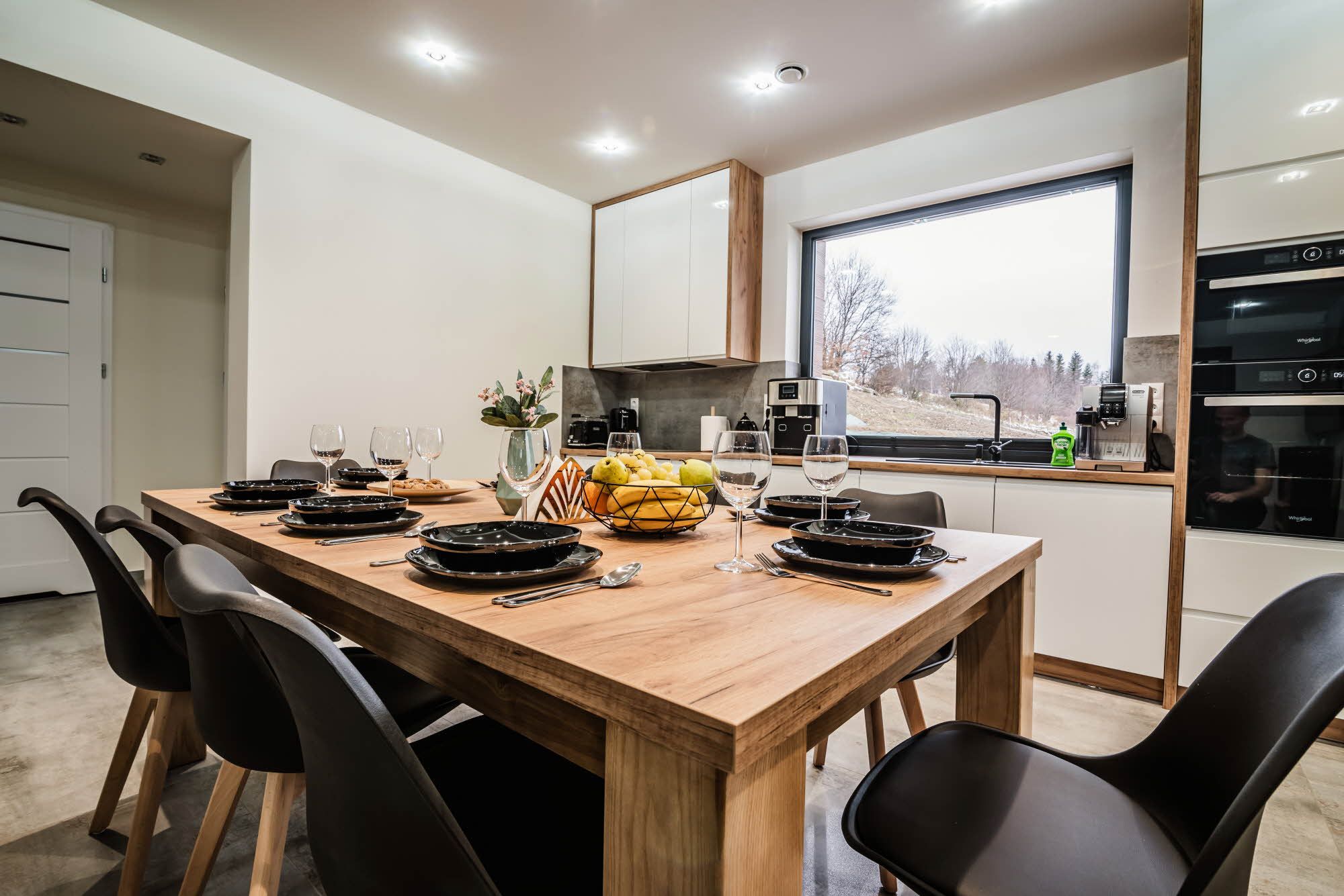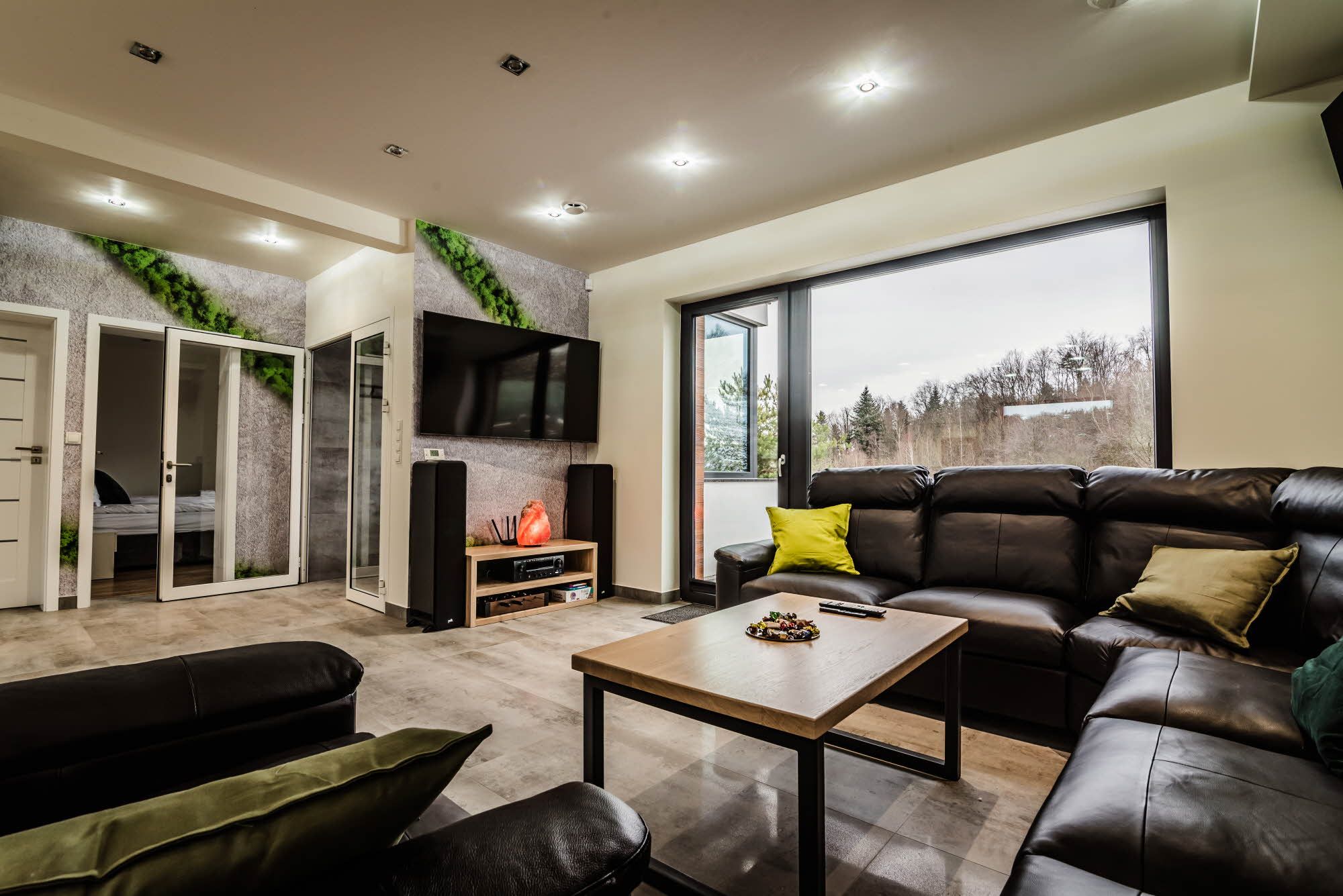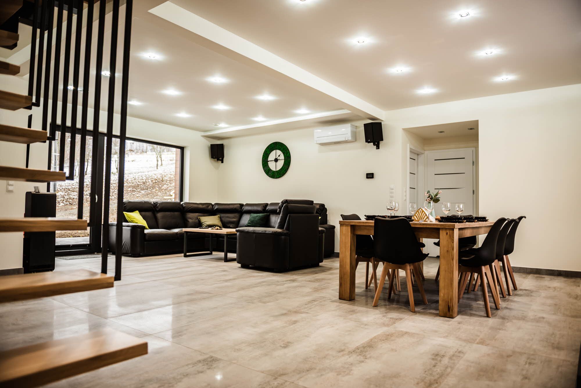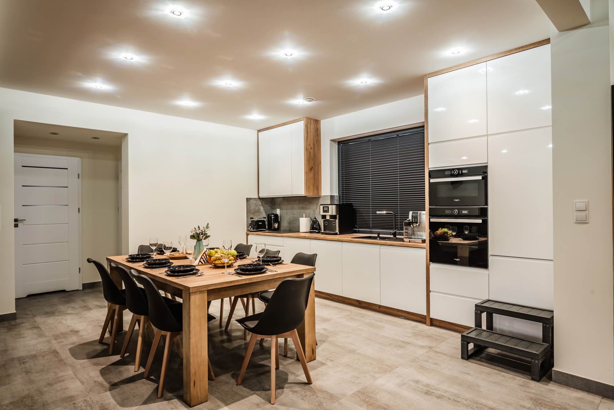 Decydując się na wynajem naszego apartamentu dostaniesz wszystko co potrzebne w jednym miejscu! Do dyspozycji naszych Gości oferujemy 6 sypialni, 3 łazienki (dwie na parterze i jedna na pierwszym piętrze), w pełni wyposażoną kuchnię, a także przestrony salon z 65-calowym telewizorem oraz sprzętem stereo wraz z 4 kolumnami. W trosce o komfort naszych Gości dom wyposażony jest również w klimatyzację, rekuperację oraz ogrzewanie podłogowe. Dodatkowo dla pełnego relaksu naszych Gości do całkowitej dyspozycji oferujemy również strefę relaksu wyposażoną w saunę, basen z jacuzzi, strefę Spa oraz tężnię solankową.