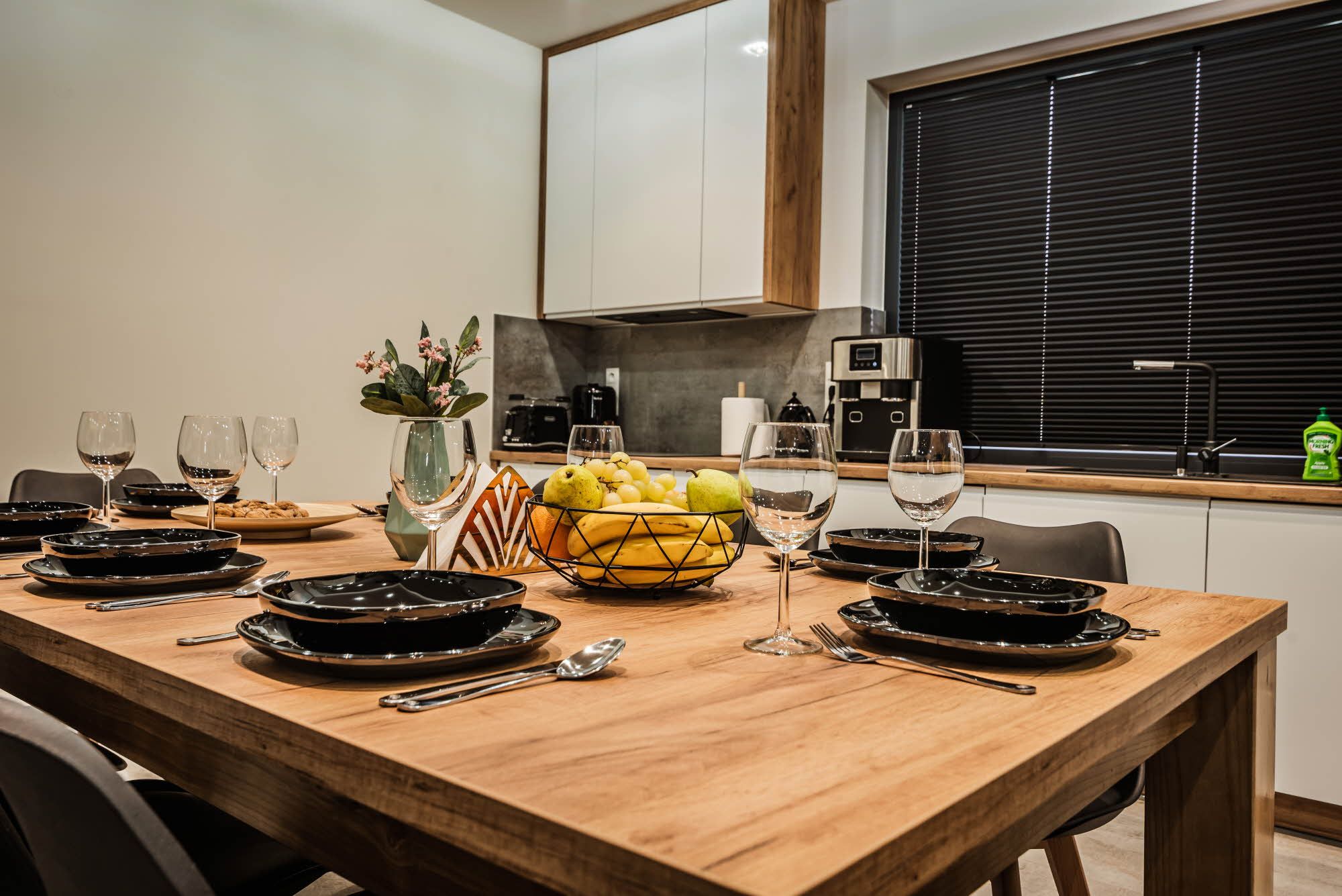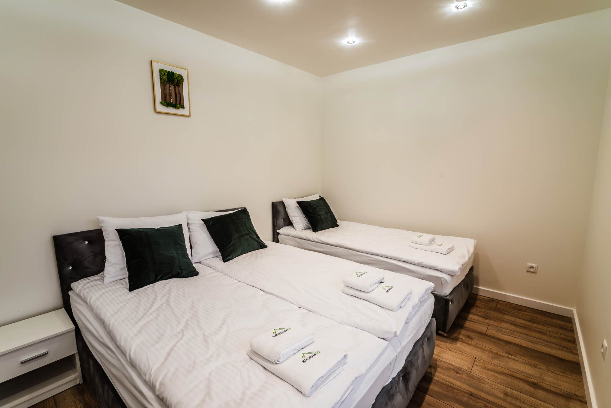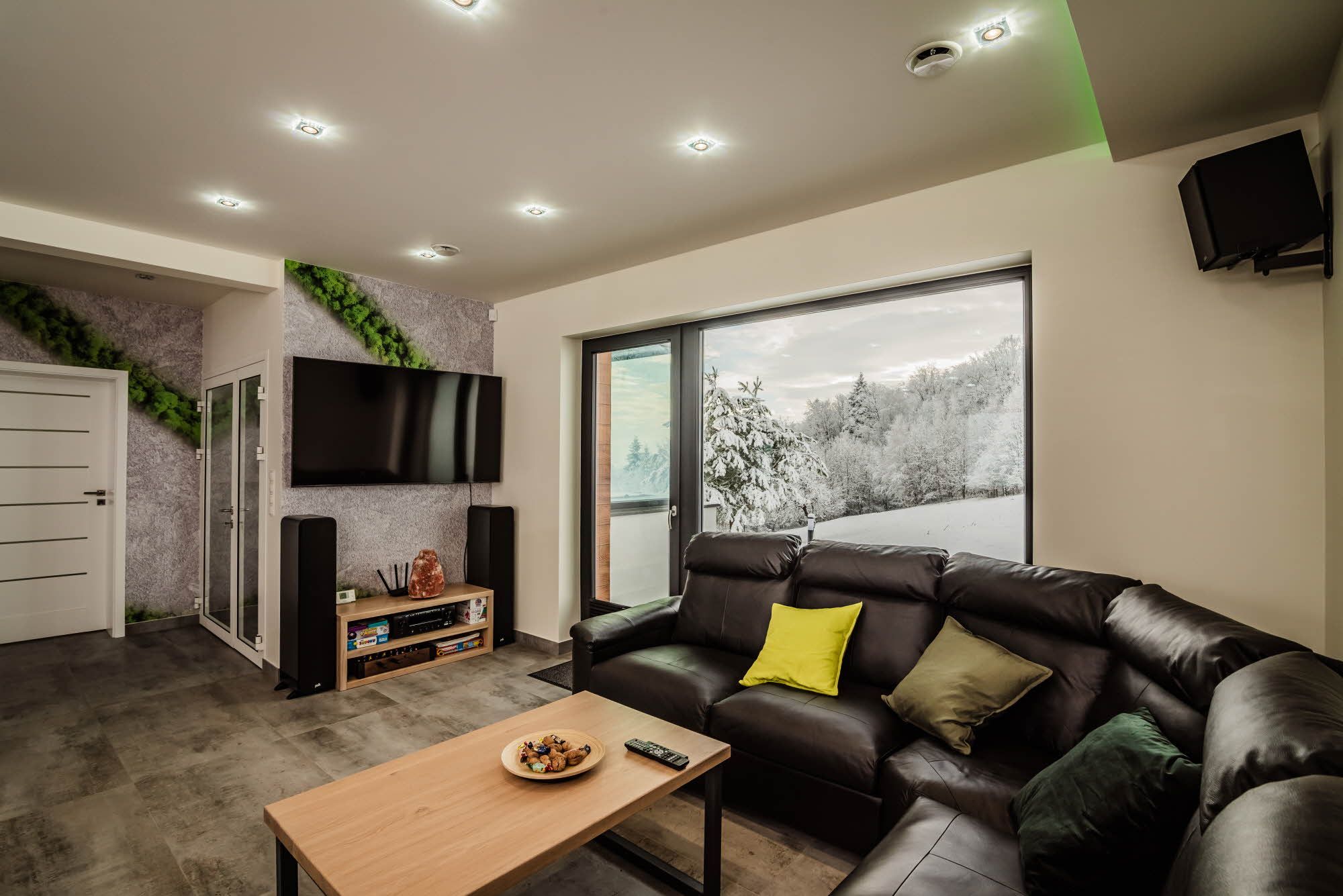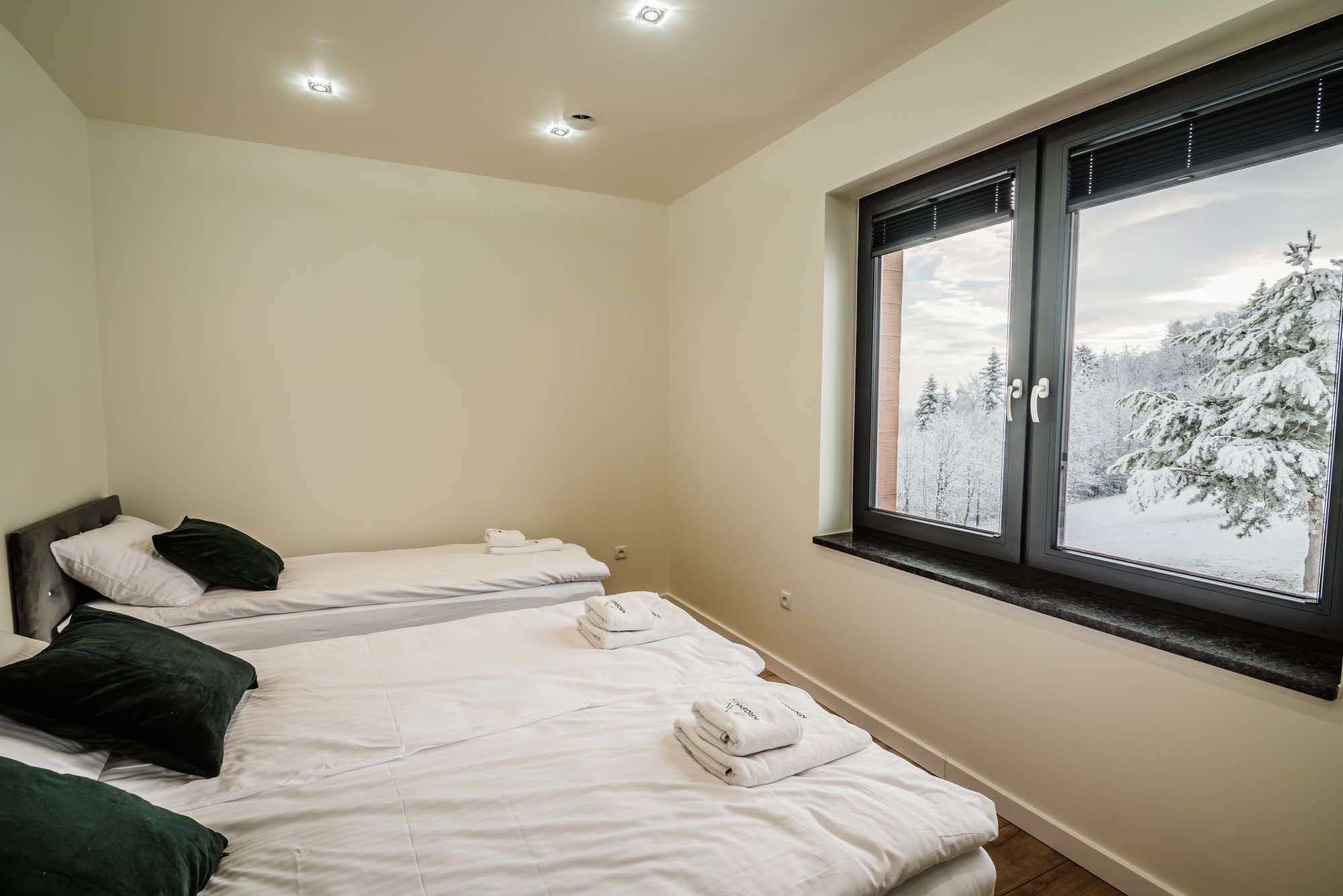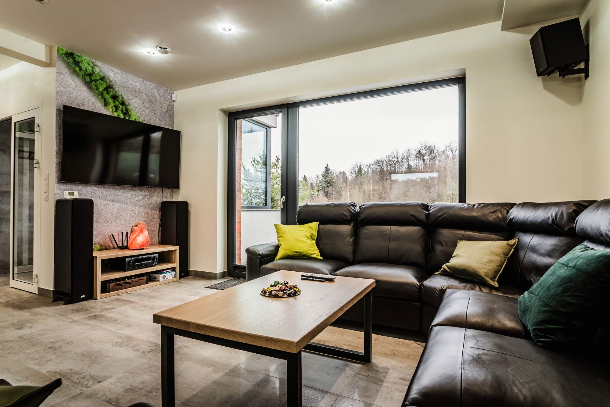 Decydując się na wynajem naszego apartamentu dostaniesz wszystko co potrzebne w jednym miejscu! Do dyspozycji naszych Gości oferujemy 6 sypialni, 3 łazienki (dwie na parterze i jedna na pierwszym piętrze), w pełni wyposażoną kuchnię, a także przestrony salon z 65-calowym telewizorem oraz sprzętem stereo wraz z 4 kolumnami. W trosce o komfort naszych Gości dom wyposażony jest również w klimatyzację, rekuperację oraz ogrzewanie podłogowe. Dodatkowo dla pełnego relaksu naszych Gości do całkowitej dyspozycji oferujemy również strefę relaksu wyposażoną w saunę, basen z jacuzzi, strefę Spa oraz tężnię solankową.